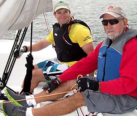 another couple of weeks he could easily pass the driver test at Sail Newport.